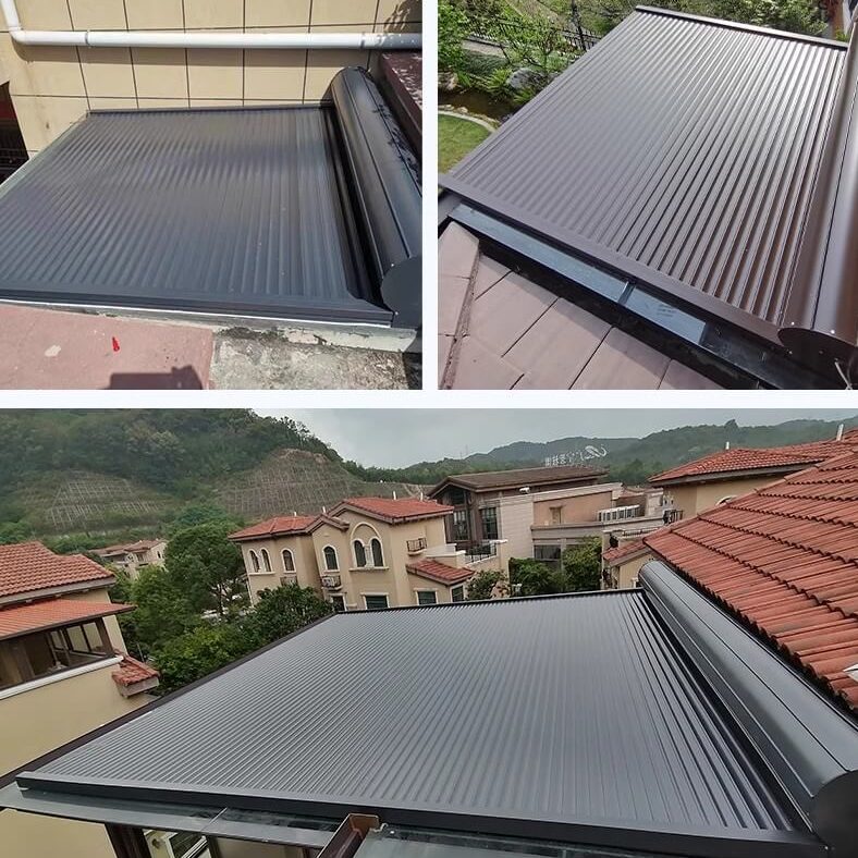 Electric aluminum large retractable awning offer effortless operation with remote control, providing shade at the touch of a button.